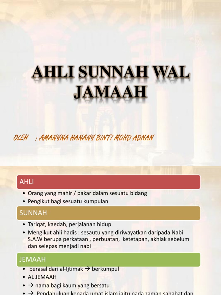Pengenalan Kepada Ahli Sunnah Wal Jamaah